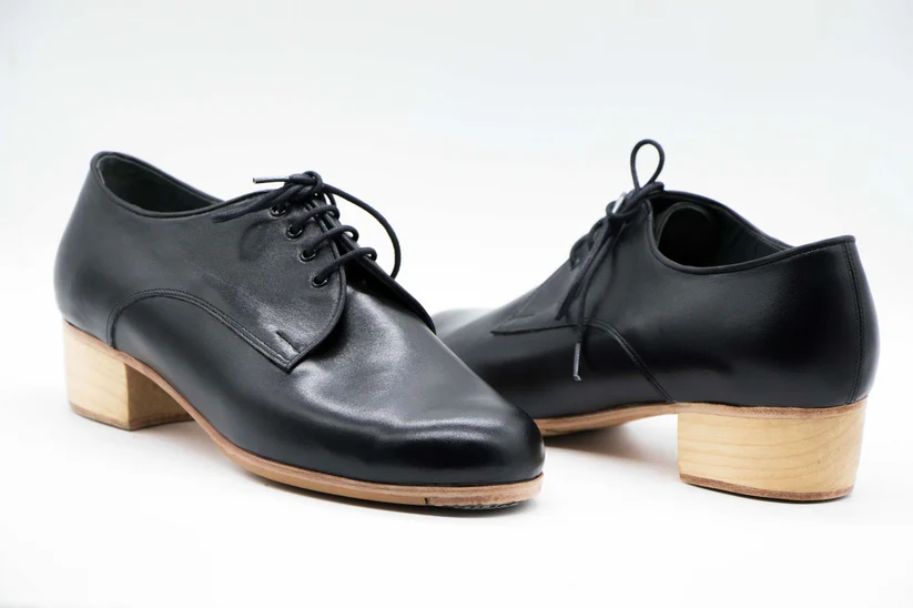 Zapatos de Flamenco profesional para Hombre. Modelo Antonio. nº41,5. Únicos, hechos a mano por Antonio García. Zapato con cordones. Fabricado en Piel Negro. Tacón bajo barnizado de 3,5 cm. Con clavos. Suela profesional cosida con filis de microfibra para amortiguar el golpe. Duración y sonido excepcional. Uno de los últimos zapatos fabricados por el artesano. Otros países consultar. Nuestra talla equivale a un número menos de los que calces en zapato de vestir (no deportiva). Por ejemplo si calzas un nº 40 en zapato. Nuestra talla será un nº 39.
