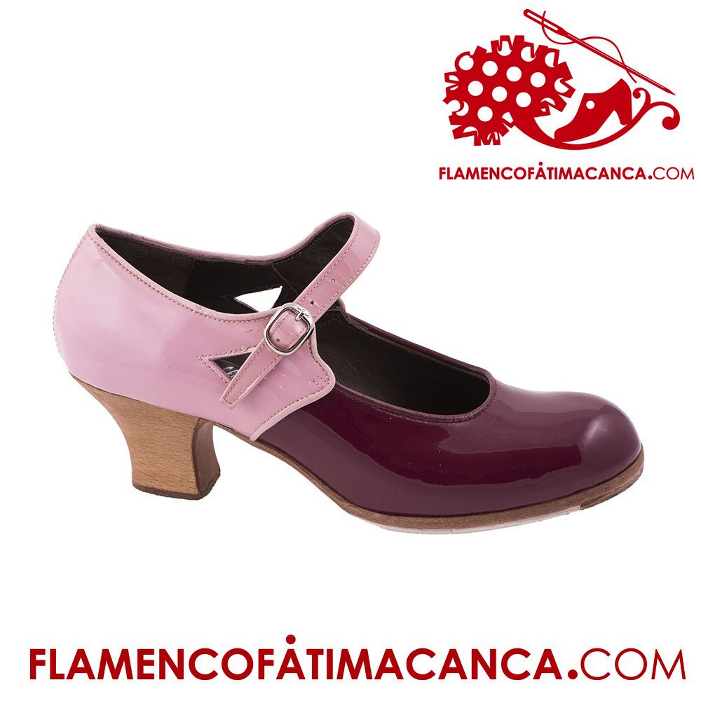 Variante del modelo base Yerbabuena A, zapato de flamenco de línea abotinado sujeto con cordones en el empeine pero con adorno de calado a ambos lados y con posibilidad de combinar distintos materiales. Fabricado en piel bovina de primera calidad, lleva filis antideslizantes y numerosos clavos en punta y tacón. Admite gran variedad de colores y tacones.