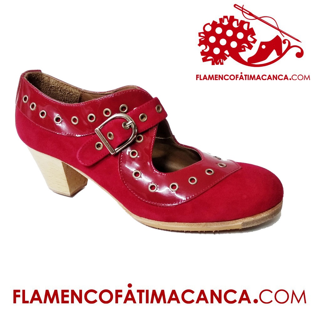Abotinado con tira ancha y hebilla. Con ojetes en correa y adorno. Ideal para combinar a dos colores. Filis antideslizantes. Clavos en puntera y tacón. Excelente sonido.