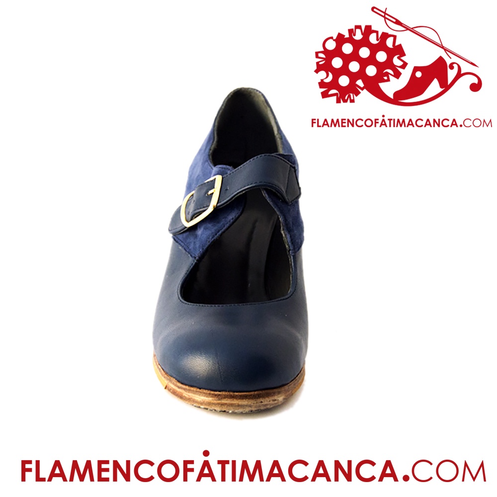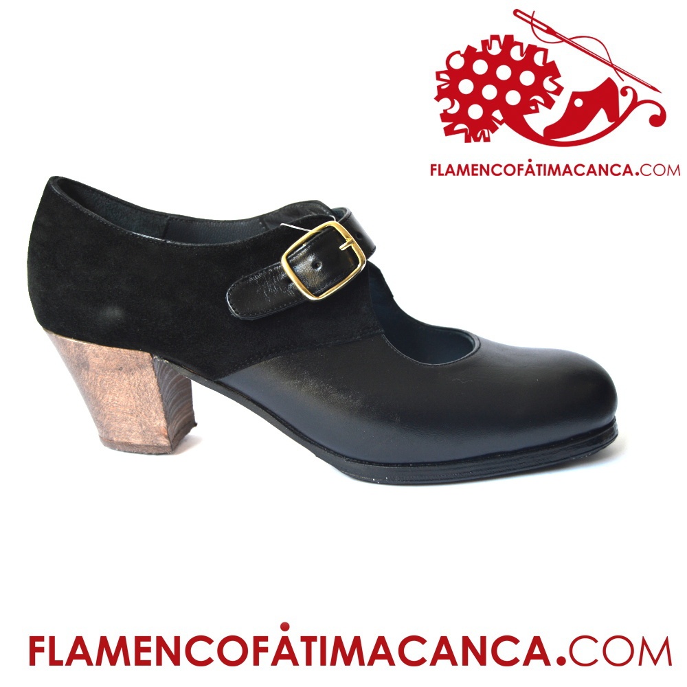 Calzado flamenco de línea nueva abotinado dividido en una pieza frontal y otra trasera con atadura de cordones. Pieles y forros de 1º calidad. Suela doble de cuero cosida. Doble cantidad de clavos en puntera y tacón puesto uno a uno con pulido final. Refuerzos en puntera y talón. Filis antideslizantes. Fabricado artesanalmente por profesional del calzado.