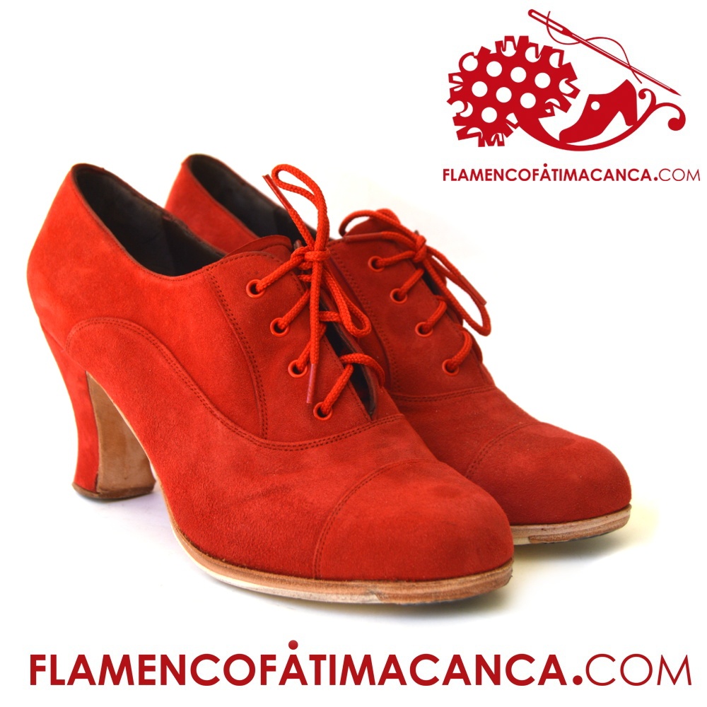 Zapato de flamenco de diseño abotinado que cubre totalmente el pie, similar al Carácter para caballeros y con piezas troqueladas que se combinan en distinto material y color. Fabricado en piel bovina de primera calidad, lleva filis antideslizantes y numerosos clavos en punta y tacón. Admite gran variedad de colores y tacones. Este artículo se elabora a mano y su fabricación tarda unos 60 días.
